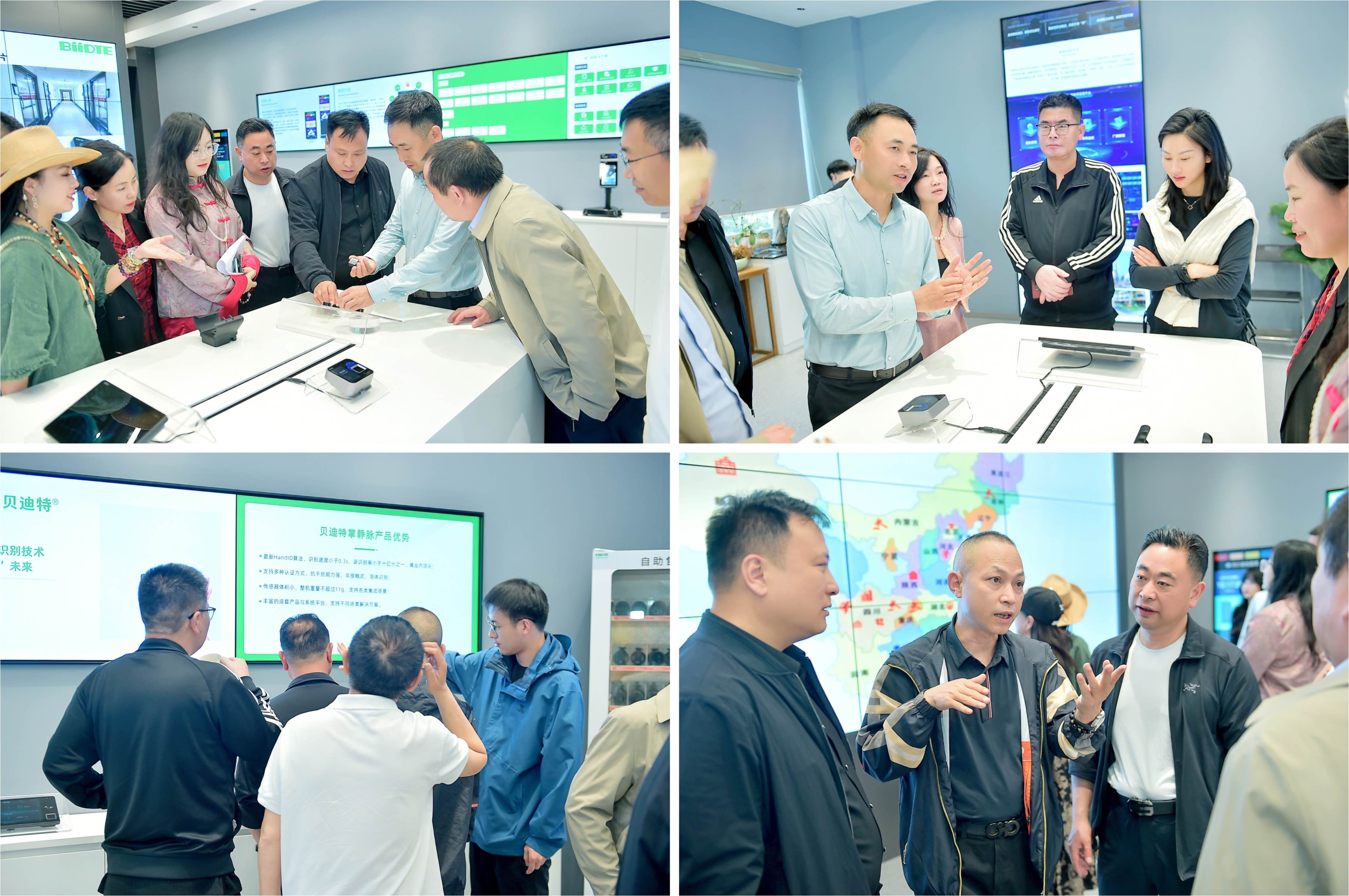 在集团科技成果展厅的掌静脉识别技术展示区,毛华鹏详细介绍了掌静脉识别算法的工作原理及其在安全认证领域的应用优势。集团旗下贝迪特掌静脉识别系列产品以其高精准度的生物特征识别方式,具有高安全性和便捷性,广泛应用于监狱、校园、医疗、政府机构等多个场景。